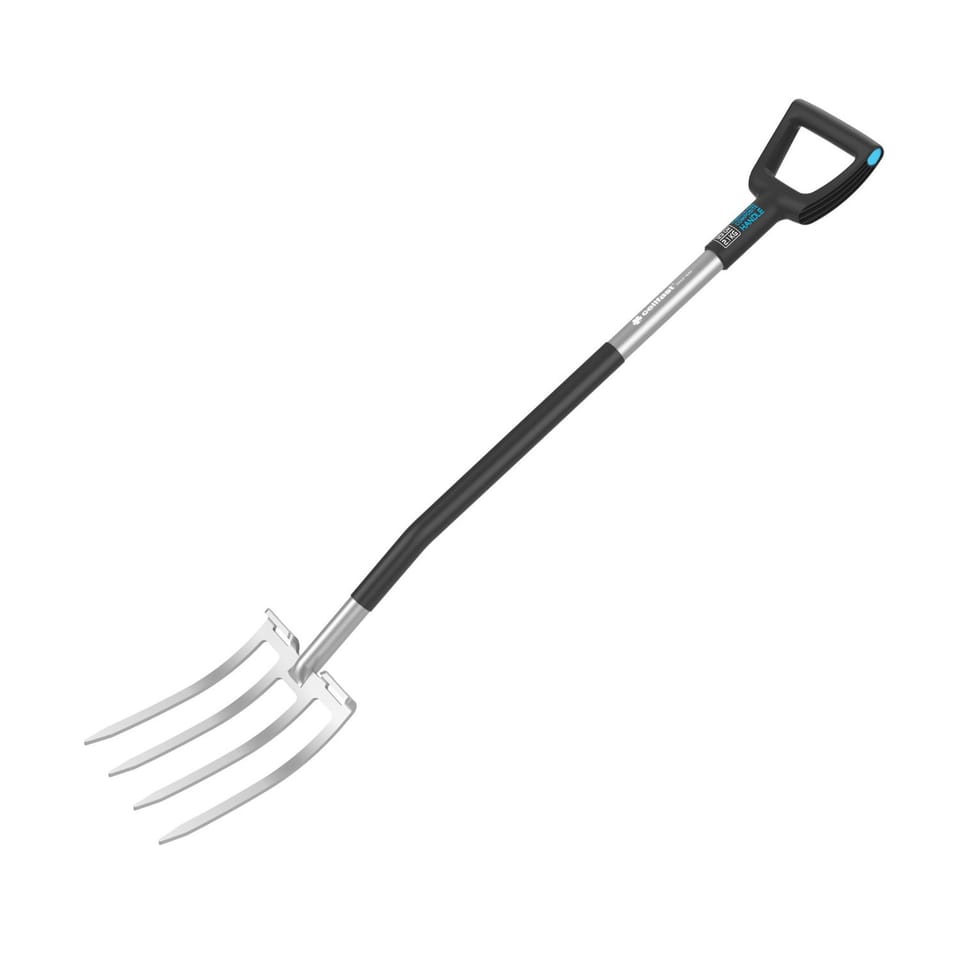 Widły ogrodowe to niezawodne narzędzie przeznaczone do przekopywania i spulchniania gleby. Dzięki ergonomicznemu trzonkowi zapewniają prawidłową, stabilną postawę podczas pracy, jednocześnie minimalizując napięcie mięśni i zmęczenie.Kształt uchwytu został zaprojektowany tak, by gwarantować pewne i wygodne trzymanie, a system SAFETOUCH dodatkowo zwiększa komfort użytkowania, chroniąc przed przypadkowymi uszkodzeniami.Miękka, antypoślizgowa powierzchnia umożliwia bezpieczne i komfortowe operowanie narzędziem obiema rękami. Hartowane zęby z wysokiej jakości stali borowej zapewniają trwałość, odporność na odkształcenia oraz skuteczne działanie nawet w twardej glebie.