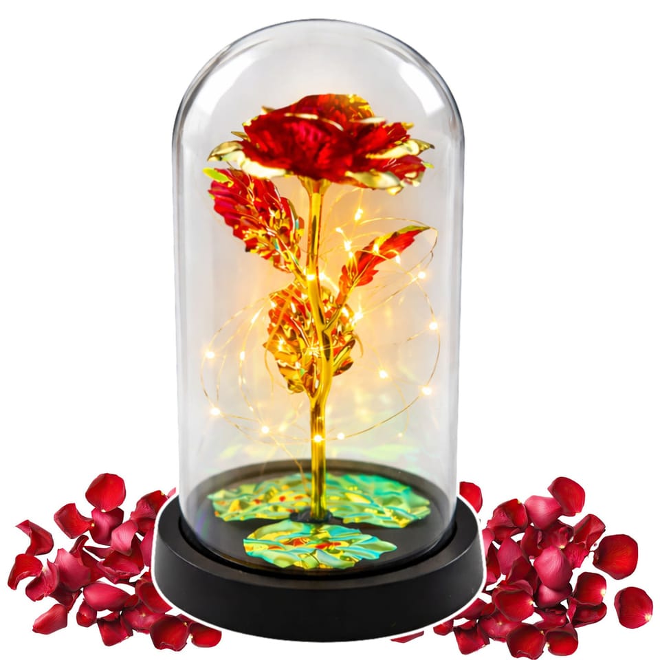 ⭐ SPECYFIKACJA✔️ Wymiary kopuły: 11 cm x 21 cm✔️ Źródło zasilania: 3 x AAA (baterie nie są dołączone)✔️ Materiał róży: Wysokiej jakości tworzywo sztuczne✔️ Podstawka: Plastik✔️ Oświetlenie: 20 diod LED o ciepłym białym świetle✔️ Opakowanie: Prezentowe pudełko✔️ Wymiary opakowania: 22 cm x 12 cm x 12 cm✔️ Kolor róży: Czerwony