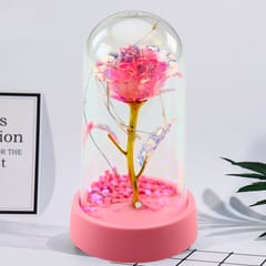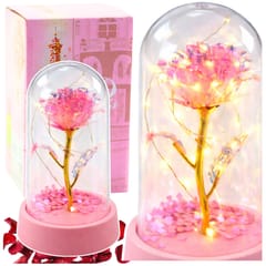 ? Wieczna Róża Kryształowa w Kopule z Oświetleniem LED ? Różowa z Serduszkami?