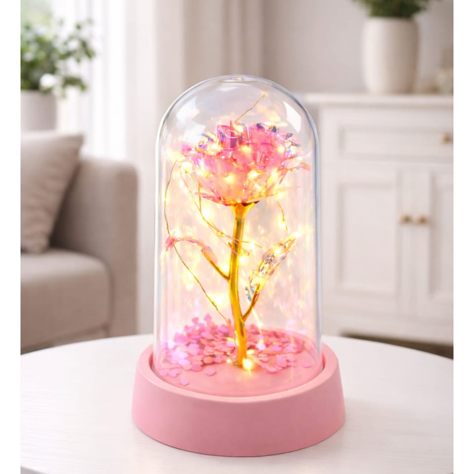 ? Oświetlenie LEDDelikatne światło LED podkreśla subtelność róży i tworzy przytulny nastrój, idealny do dekoracji wnętrz i romantycznych chwil.