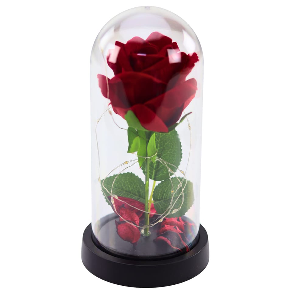 ✔️ Wymiary kopuły: 11 cm x 21 cm✔️ Wymiary opakowania: 22 cm x 12 cm x 12 cm✔️ Źródło zasilania: 3 x AAA (baterie nie są dołączone)✔️ Materiał róży: Wysokiej jakości tworzywo sztuczne✔️ Podstawka: Plastik✔️ Oświetlenie: 20 diod LED o ciepłym białym świetle✔️ Opakowanie: Prezentowe pudełko