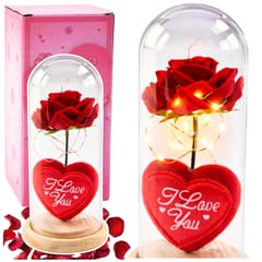 ? Wieczna Róża w Kopule z Oświetleniem LED ? Czerwona z Serduszkiem i Napisem Love?