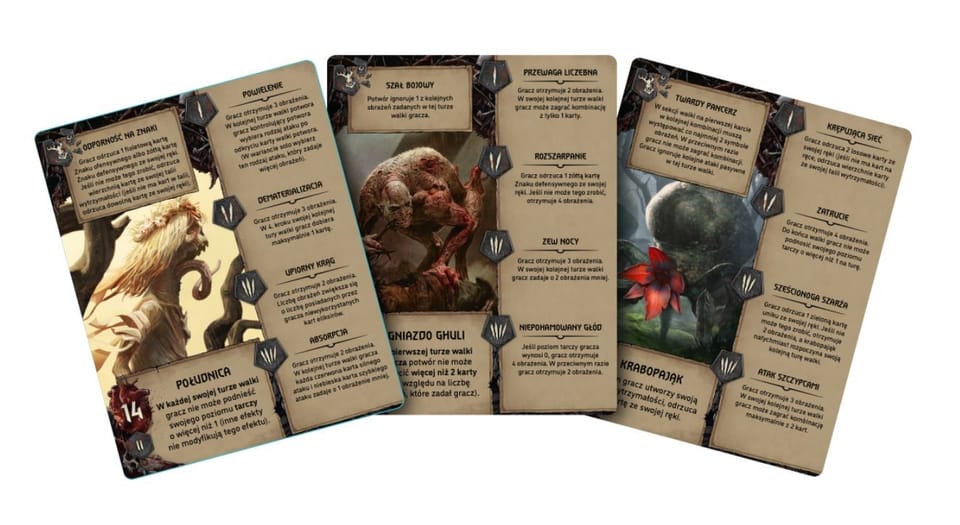 Wiedźmin: Stary Świat - Na tropie potworów to rozszerzenie wprowadzające kilka nowych wariantów gry, z których można korzystać oddzielnie albo jednocześnie. Gracze będą mieli okazję wcielić się w wiedźmina ze Szkoły Mantikory o unikalnej zdolności tolerancji na eliksiry. 40 zaawansowanych kart akcji zapewni ciekawe efekty i pozwoli tworzyć jeszcze potężniejsze kombinacje. Do wiedźmińskich arsenałów dołączą też karty petard i mutagenów, które pozwolą zyskać przewagę w polowaniu na potwory. To cenny bonus, zwłaszcza że z tym dodatkiem możemy wyposażyć potwory w ataki specjalne i słabości.