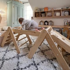 Młodsze dzieci uwielbiają wspinaczki, przysiady. Takie zabawy są dzieciom potrzebne do poprawnego rozwoju umiejętności psychomotorycznych. Kolorowa drabinka oraz ścianka wspinaczkowa wykonane są z litego drewna. Ten nowy produkt MeowBaby zgodny ze słynną metodą pedagogiczną Marii Montessori. Zabawki w tym duchu to w dużej mierze naturalne produkty, które pobudzają dziecko do samodzielności, aktywności fizycznej i kreatywnej zabawy, czasem przecież twoje dziecko potrzebuje bazy na auto lub domku dla ulubionej lalki lub innego ukochanego przytulaka. Ta designerska drabinka odznacza się bardzo wysoką jakością wykonania. Na pewno będzie to ulubiona zabawka każdego aktywnego dziecka.