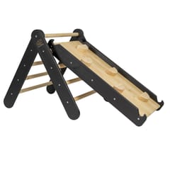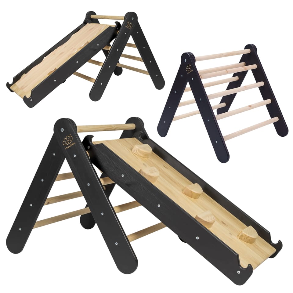 Drabinka, Zjeżdżalnia-Ścianka Wspinaczkowa 2w1, Zestaw dla dzieci, drewniana, czarna