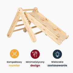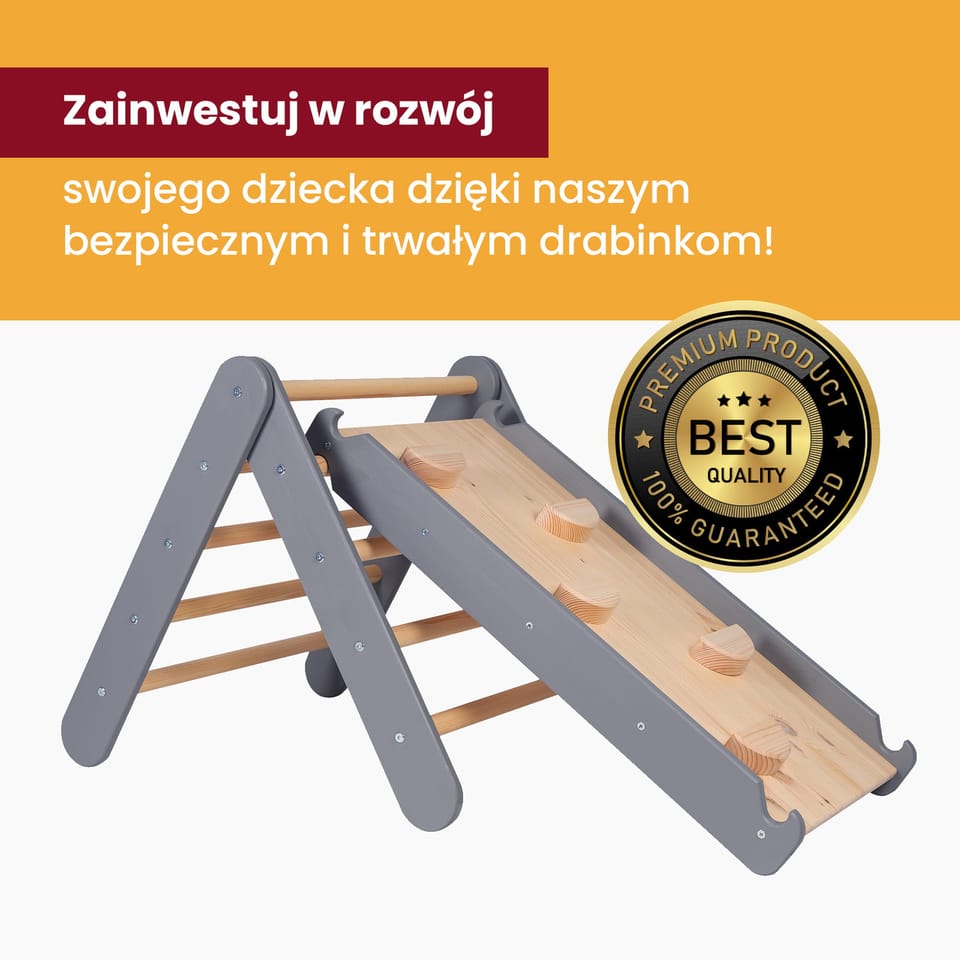 Wielofunkcyjna drabinka to niezwykłe połączenie klasycznej zabawki z nowoczesnymi elementami, które zapewniają dzieciom nie tylko radość z wspinaczki, ale także kreatywną przestrzeń do zabawy i aktywności fizycznej. To domowy plac zabaw, która można z szybkością złożyć i rozłożyć. Wyposażona w dodatkową dwustronną ściankę wspinaczkową i zjeżdżalnię, drabinka stanie się ulubionym miejscem zabaw dla każdego dziecka.