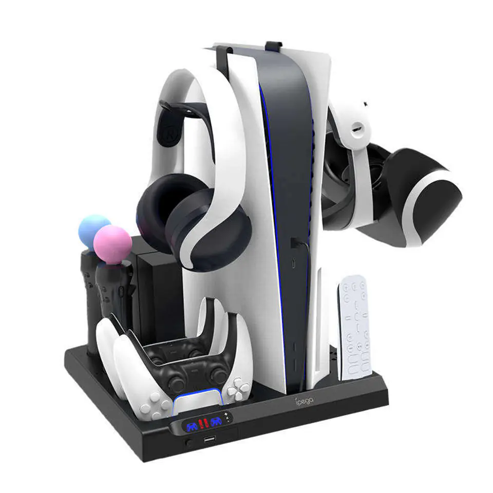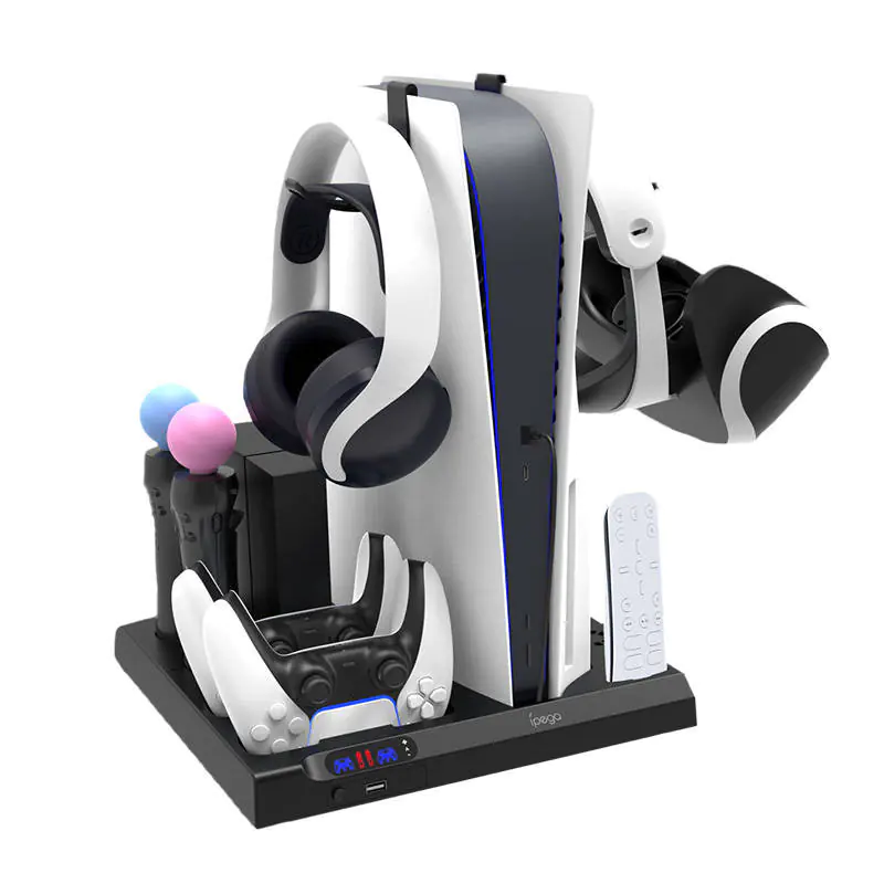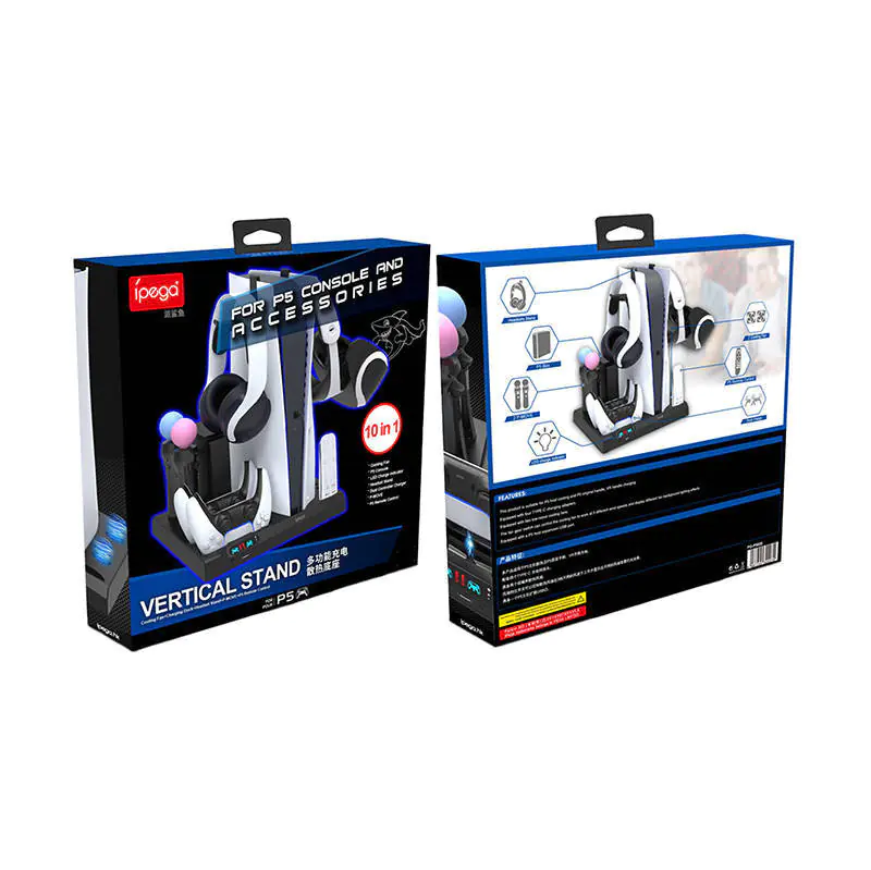Podstawka iPega pozwala ładować 2 kontrolery PS5 i 2 kontrolery MOVE jednocześnie, dzięki czemu zaoszczędzisz czas. Oprócz tego ułatwi zachowanie porządku i przechowywanie konsoli oraz jej akcesoriów. Została też wyposażona w 2 wentylatory, które zapobiegają przegrzaniu sprzętu, oraz 2 haczyki na słuchawki lub okulary VR. Dodatkowo PG-P5028 jest dostępna w dwóch wariantach kolorystycznych: czarnym i białym.