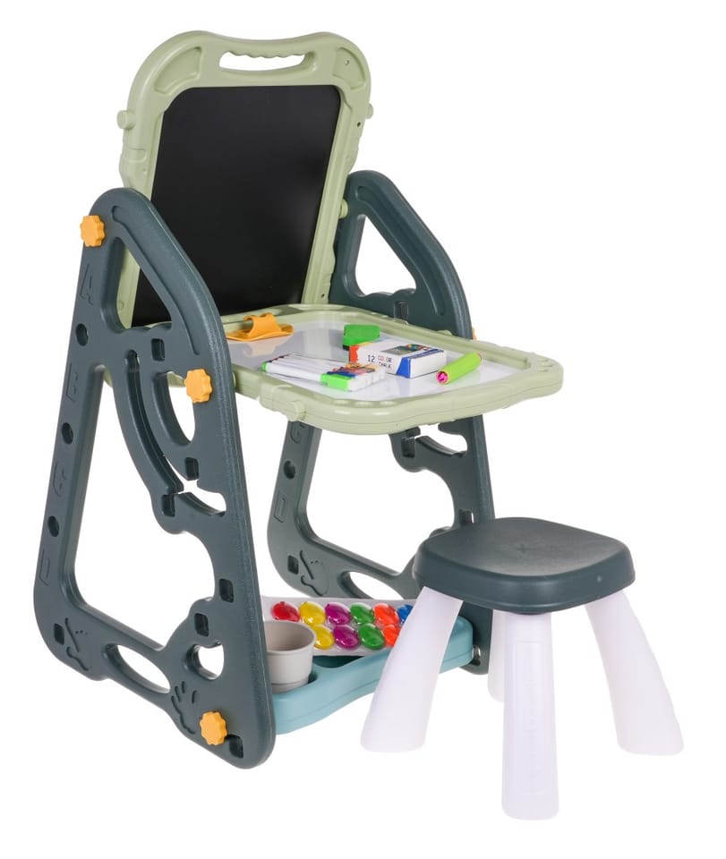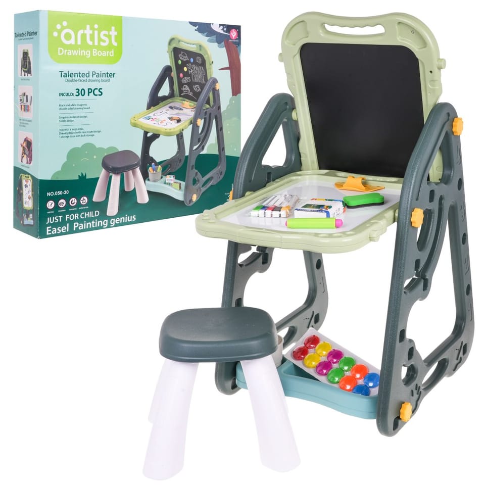 Wielofunkcyjna Tablica dla dzieci 3+ Tablica magnetyczna + Tablica kredowa + Krzesełko + Przybory papiernicze
