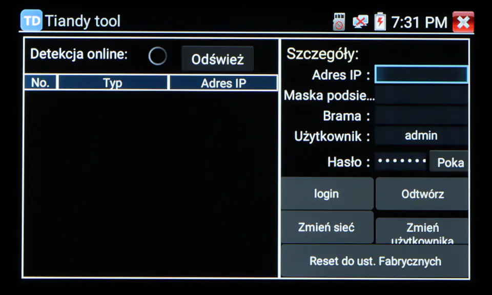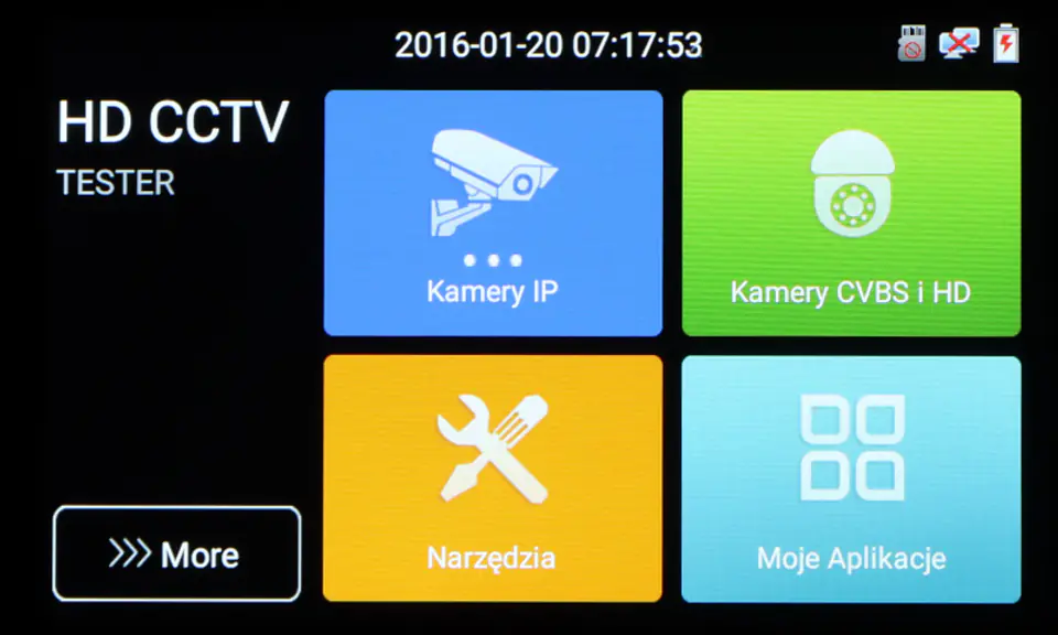Wielofunkcyjny tester kamer AHD, HD-CVI, HD-TVI, IP, kamer analogowych, Speed Dome (PTZ), wyposażony w wiele dodatkowych funkcji, niezbędnych przy uruchamianiu instalacji CCTV