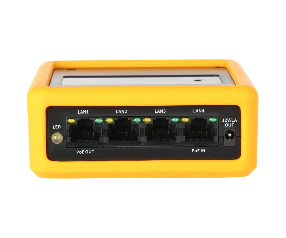 PFM2900 to przenośny tester instalatora, który podgląda obraz z kamer (H.264/H.265, ONVIF/Dahua), inicjuje urządzenia i szybko zmienia IP, hasło czy rozdzielczość. Zasila kamerę 12V DC lub PoE 16 W, oferuje hotspot Wi-Fi i 4x porty 100 Mb/s, a akumulator 7800 mAh i latarka LED ułatwiają pracę w terenie.