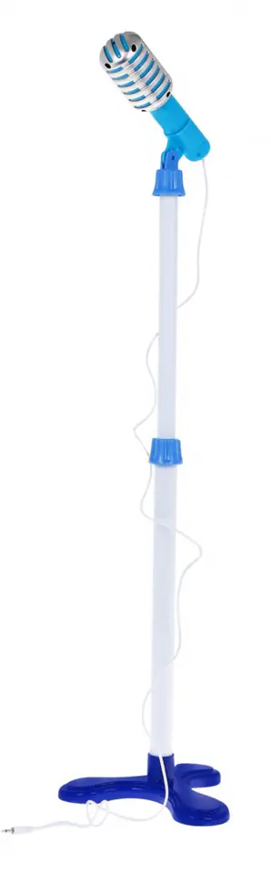 Zestaw karaoke dla dzieci powyżej 5 -go roku życia, zawierający wzmacniacz i mikrofon ze stojakiem. Zasilany bateriami 3 x AA 1,5V, których brak w zestawie.