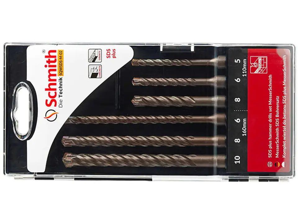 - Rozmiary wierteł w komplecie: 5x110 mm / 6x110 mm / 8x110 mm / 6x160 mm / 8x160 mm / 10x160 mm