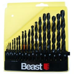 19 wierteł zapakowanych w praktyczne plastikowe pudełko.