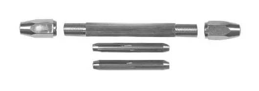 Korpus wiertła ręcznego w zestawie z dwoma dwustronnymi zaciskami szczękowymi do montowania dowolnego rodzaju wierteł.