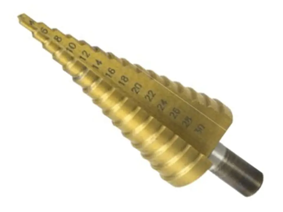 Wiertło stopniowe Dedra WMST0430 wykonane ze stali szybkotnącej HSS i pokryte powłoką azotku tytanu. Średnica 4mm - 30mm. Średnica chwytu 10mm. Przeznaczone do wiercenia w metalu.