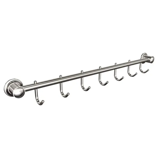 Nazwa produktu: Wieszak 7-hakowyKod: 059Producent: ANDEXOpis:- Wymiary: 597 mm x 70 mm x 63 mm- Produkt wykonany jest na bazie mosiądzu z dodatkiem stopu cynku i aluminium (ZnAl)- Całość pokryta jest powłokami galwanicznymi: miedziowo-niklowo-chromową jako zewnętrzna warstwa wykończeniowa- Cechą kolekcji jest ponadczasowy wzór i wysoka jakość- Produkt objęty jest pięcioletnią gwarancją Informacje dodatkowe:- Na indywidualne zamówienie oprócz dostępnych wymiarów może zostać wykonana dowolna długość wieszaka.
