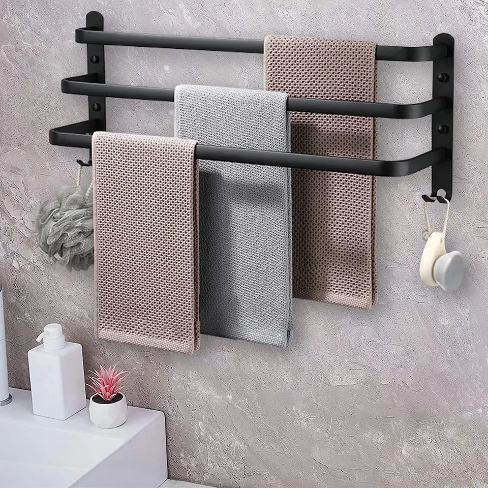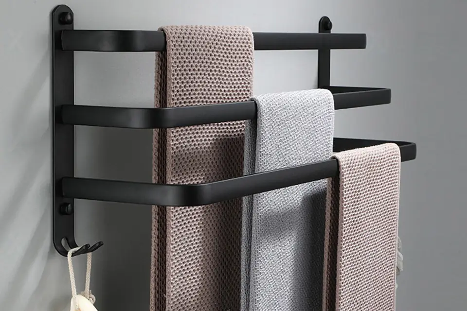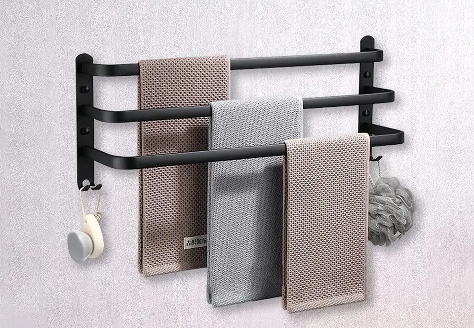 Wieszak Athos 49 cm czarny loftPrzeznaczenie: łazienka | Kolory: czarny Athos to świetnie zaprojektowany wieszak łazienkowy. Wykonany z aluminium najwyższej jakości z zachowaniem dbałości o najmniejsze szczegóły. Cechuje go wysoka estetyka detali i staranne wykonanie. Posiada zaokrąglone rogi i bardzo gładkie krawędzie. Poza tym jest solidny, wytrzymały a przy tym niezwykle lekki. Athos to wieszak z przeznaczeniem na ręczniki. Na dolnych dodatkowych haczykach można zawieszać akcesoria do mycia jak myjki czy gąbki. Całość malowana proszkowo na efektowną matową czerń. Uniwersalny czarny kolor sprawia, że doskonale sprawdzi się w nowocześnie urządzonych łazienkach w stylu industrialnym czy loftowym. Cechy produktuMateriał: aluminiumOdporność na korozjęWykończenie: czarny matWaga zestawu: 0,45 kgMontaż: na kołkiW komplecie: zestaw do montażu ściennego (kołki) i instrukcja montażuWymiary produktuWysokość 250 mmSzerokość 490 mmGłębokość 135 mm Informacje dodatkowePrzedstawione kolory należy traktować poglądowo - mogą odbiegać od rzeczywistych ze względu na różne ustawienia monitorów oraz proces obróbki zdjęć. Rzeczywiste wymiary mogą się różnić od podanych wyżej. Tolerancja błędów może wynosić +/- 5%. Marka:GockowiakKod produktu:323465MGKolor:czarnyWysokość: 25,5 cmSzerokość:50 cmGłębokość:14,5 cmPrzeznaczenie:łazienka