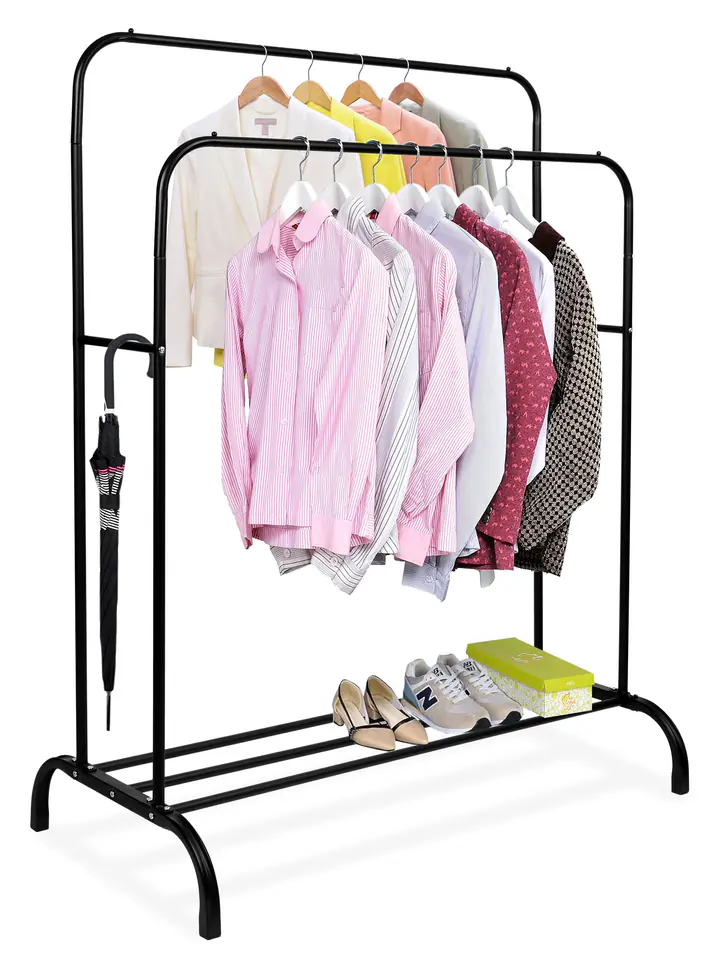 Wieszak do garderoby podwójny BENI czarnyModel: Beni | Kolor: czarny⭐️ Stabilna metalowa konstrukcja⭐️ Dwa podłużne drążki na wieszaki⭐️ Blokady przed zsuwaniem się ubrań⭐️ Praktyczna dolna półka na buty lub akcesoria⭐️ Zakup od producenta ✨Wieszak stojący podwójny Beni czarny - Praktyczne rozwiązanie do każdego wnętrza✨☑️ Kolor: Czarny matWieszak Beni to funkcjonalny i stylowy sposób na zorganizowanie odzieży, butów i dodatków w jednym miejscu. Dzięki podwójnej konstrukcji i dodatkowej półce zyskujesz więcej przestrzeni do przechowywania, bez konieczności montażu w ścianie. Solidna, stalowa rama zapewnia stabilność i bezpieczeństwo użytkowania nawet przy dużym obciążeniu. Czarny mat doskonale pasuje do nowoczesnych wnętrz i stylu loftowego, a przemyślane detale sprawiają, że codzienne korzystanie z wieszaka jest po prostu wygodne. CechyMateriał: stal malowana proszkowoWaga z opakowaniem: 3,20 kgKolor: czarny matMaksymalne równomierne obciążenie: 30 kgObciążenie drążka: 15 kgObciążenie półki: 10 kg WymiaryWysokość: 146 cmSzerokość: 110 cmGłębokość: 56 cm Informacje dodatkowePrzedstawione kolory należy traktować poglądowo - mogą odbiegać od rzeczywistych ze względu na różne ustawienia monitorów oraz proces obróbki zdjęć. Rzeczywiste wymiary mogą się różnić od podanych wyżej. Tolerancja błędów może wynosić +/- 5%. Marka:GockowiakKod EAN:5902340325957Kolor:czarnyWysokość: 146 cmSzerokość:110 cmGłębokość:56 cmMateriał:stalPrzeznaczenie:przedpokój, garderoba, biuroDo samodzielnego montażu:tak