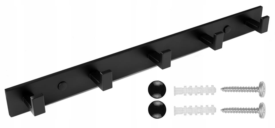 Wieszak loft PSINO czarny⭐️ 5 haczyków do zawieszenia⭐️ Wykonany z najwyższej jakości aluminium pomalowanego proszkowo na czarny matowy kolor⭐️ Montaż na kołki (dołączone do zestawu)⭐️ Doskonały do łazienki, przedpokoju i kuchni⭐️ Zakup od producenta✨Czarny wieszak Psino – Nowoczesny, minimalistyczny dodatek do wnętrz✨Wieszak ścienny Psino wyposażony w pięć haczyków został wykonany z wysokiej klasy aluminium odpornego na rdzę i działanie wilgoci. Jego powierzchnia została pokryta czarną, matową farbą proszkową, co podkreśla estetykę i precyzję wykonania. Uniwersalna czarna kolorystyka sprawia, że wieszak świetnie odnajdzie się w różnych przestrzeniach – od łazienki, przez przedpokój, aż po kuchnię. Doskonale komponuje się z aranżacjami w stylu loftowym i nowoczesnym.Cechy:Materiał: aluminiumWykończenie: czarny matWaga zestawu: 0,4 kgMontaż: na kołkiW komplecie: zestaw do montażu ściennego (kołki) i instrukcja montażu Wymiary:Wysokość: 4 cmSzerokość: 46 cmGłębokość: 4 cm Informacje dodatkowePrzedstawione kolory należy traktować poglądowo - mogą odbiegać od rzeczywistych ze względu na różne ustawienia monitorów oraz proces obróbki zdjęć. Rzeczywiste wymiary mogą się różnić od podanych wyżej. Tolerancja błędów może wynosić +/- 5%.Marka:GockowiakKod EAN:5902340325056Kolor:czarnyWysokość: 4 cmSzerokość:46 cmOdległość od ściany:4 cmMateriał:aluminium