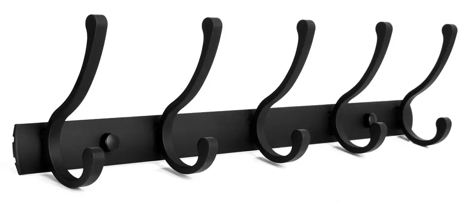 Wieszak loft Zaros czarnyPrzeznaczenie: do przedpokoju | Kolor: czarny Wieszak Zaros wykonano z wysokiej jakości aluminium. Zabezpieczono go malowaniem proszkowym w kolorze czarnego matu. Doskonale wpisze się w każde eleganckie wnętrze.Będzie idealny zarówno do stylu klasycznego jak i loftowego. Pięć eleganckich, podwójnych haków pomieści dużą liczbę ubrań.Montaż wieszaka jest bardzo prosty, wystarczy użyć kołków montażowych dołączonych do zestawu. Specyfikacja:Materiał: aluminiumOdporność na korozjęWykończenie: czarny matWaga zestawu: 0,35 kgMontaż: na kołkiW komplecie: zestaw do montażu ściennego (kołki) i instrukcja montażu Uniwersalne i praktyczne:jako haczyki kuchenne na akcesoria, ścierki itpjako haczyki łazienkowe na ręczniki, myjki itpjako haczyki ścienne do przedpokojujako haczyki na drzwiach Wymiary:Wysokość: 11 cmSzerokość: 45 cmGłębokość: 7 cmRozstaw śrub: 30 cm Informacje dodatkowePrzedstawione kolory należy traktować poglądowo - mogą odbiegać od rzeczywistych ze względu na różne ustawienia monitorów oraz proces obróbki zdjęć. Rzeczywiste wymiary mogą się różnić od podanych wyżej. Tolerancja błędów może wynosić +/- 5%.Marka:GockowiakKod EAN:325469MGKolor:czarnyWysokość: 11 cmSzerokość:45 cmOdległość od ściany:7 cmMateriał:stal malowana proszkowo