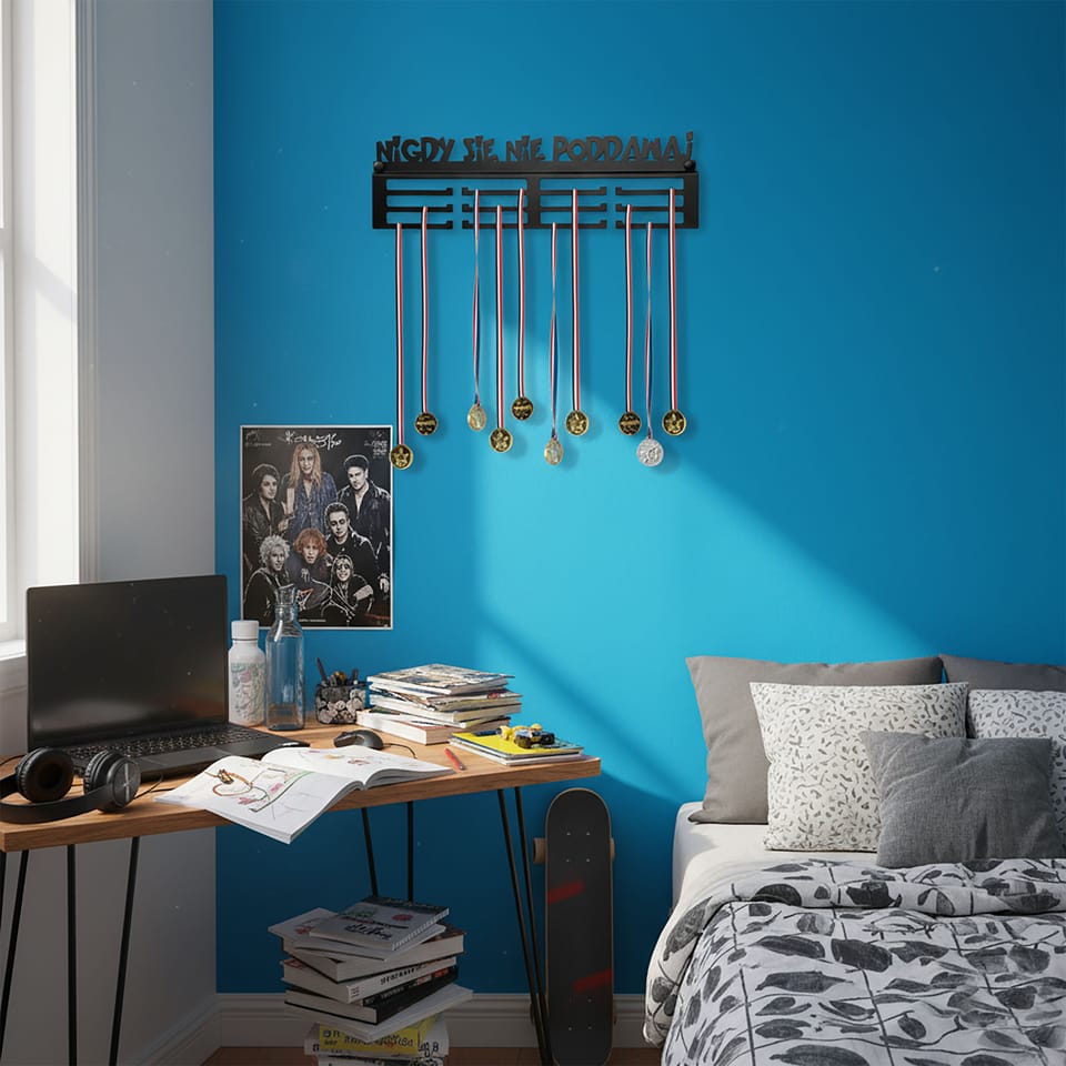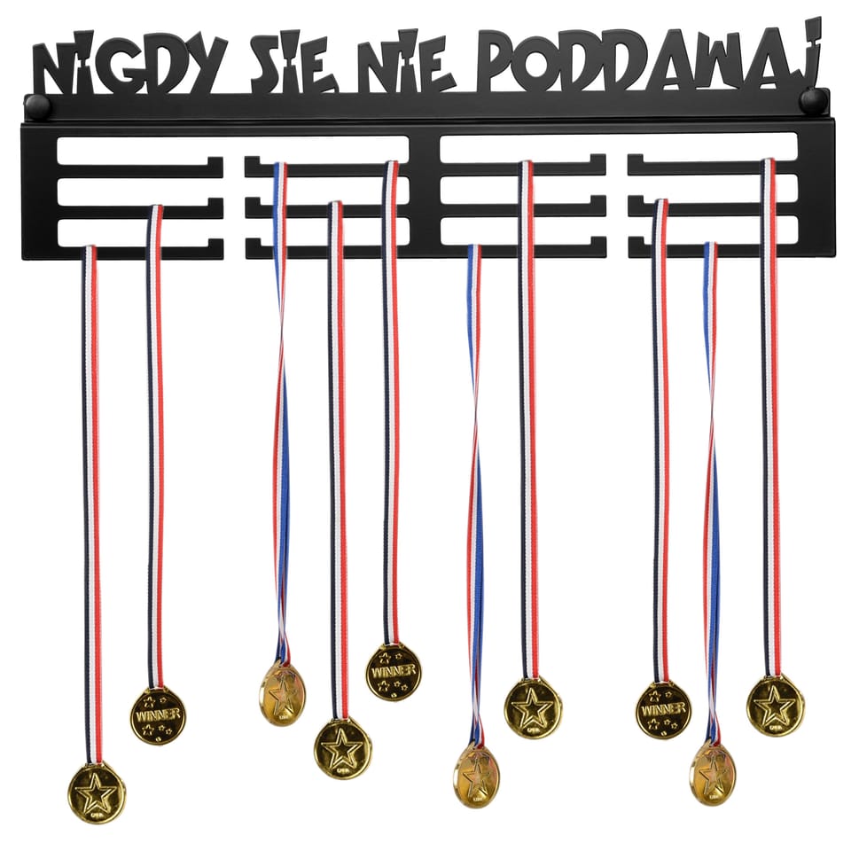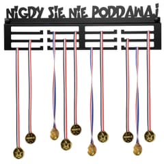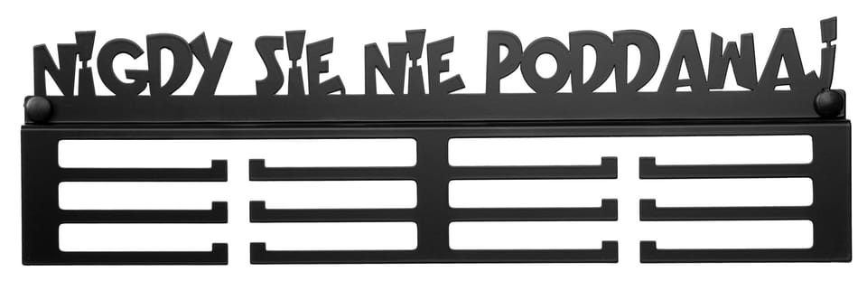Wieszak na medale Nigdy się nie poddawaj!Model: Nigdy się nie poddawaj! | Kolory: czarnyDoskonały pomysł na prezent. Wieszak na medale to najmodniejszy gadżet do pokoju zarówno dzieci jak i dorosłych! Bardzo estetycznie wykonany, literki wycinane sa bowiem laserowo. Metalową konstrukcję zabezpieczono proszkowo matowym lakierem w czarnym kolorze. Dwanaście uchwytów pomieści od sześćdziesięciu do stu medali. Cechy produktuMateriał: stal malowana proszkowoKolor: czarny matPrzeznaczenie: na medaleZawartość zestawu: wieszak na medale, kołki, wkręty, zaślepki, instrukcja w j. PolskimMaksymalne obciążenie: 10 kgWaga wieszaka: 0,4 kg Wymiary Wysokość: 12 cmSzerokość: 40 cmGłębokość: 1,7 cm Informacje dodatkowePrzedstawione kolory należy traktować poglądowo - mogą odbiegać od rzeczywistych ze względu na różne ustawienia monitorów oraz proces obróbki zdjęć. Rzeczywiste wymiary mogą się różnić od podanych wyżej. Tolerancja błędów może wynosić +/- 5%. Marka:GockowiakKod produktu:330463MGKod EAN:5902340330463Kolor:czarnySzerokość: 40 cmWysokość:12 cm