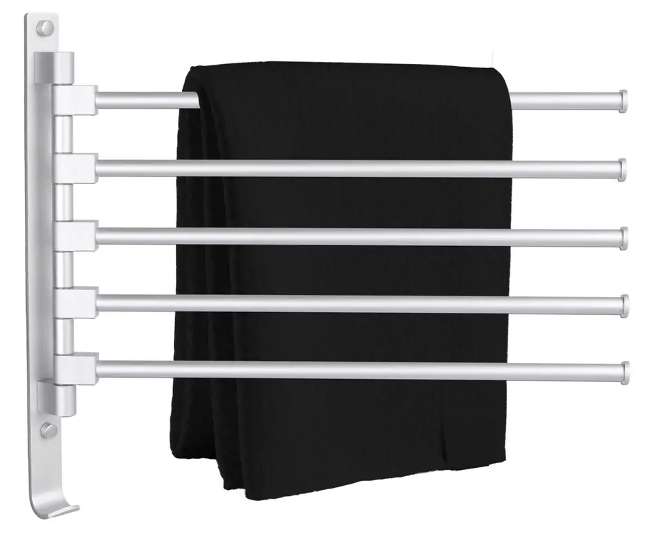 Wieszak na ręczniki Tyros srebrnyPrzeznaczenie: łazienka | Kolory: srebrny mat Wieszak łazienkowy Tyros polecamy do łazienek w stylu klasycznym, nowoczesnym i glamour.Jego główną zaletą jest fakt, że ma pięć w pełni obrotowych ramion. Można je dowolnie rozłożyć lub złożyć razem przy ścianie. Ma też dodatkowy hak na ubrania czy szlafrok.Tyros to starannie wykonany wieszak wykonany z wysokiej jakości aluminium i wykończony na srebrny mat. Cechy produktuMateriał: aluminiumKolor: srebrny mat5 obrotowych ramionHaczyk na akcesoriaZestaw montażowyZaślepkiNowoczesny wyglądWymiary produktuWysokość 37,5 cmSzerokość 3 cmDługość ramienia 37,5 cmGłębokość całkowita wieszaka 43 cmŚrednica ramienia 1,2 cmRozstaw śrub 30 cmOdstęp ramion 4 cm Informacje dodatkowePrzedstawione kolory należy traktować poglądowo - mogą odbiegać od rzeczywistych ze względu na różne ustawienia monitorów oraz proces obróbki zdjęć. Rzeczywiste wymiary mogą się różnić od podanych wyżej. Tolerancja błędów może wynosić +/- 5%.Marka:GockowiakKod EAN:325261MGKolor:srebrny matWysokość: 37,5 cmDlugość ramienia:37,5 cmIlość ramion:5Materiał:aluminium