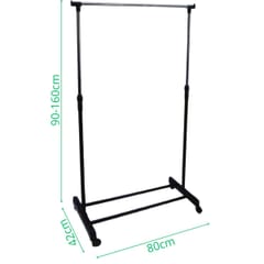 - Wymiary ok.: 80x42x90-160cmKolor: srebrny, czarnyMateriał: stal nierdzewna, tworzywo sztuczneMaksymalne obciążenie: 10 kgKółka: takIlość drążków: 1 szt.Do samodzielnego montażu: takWymiar opakowania (karton) ok.: 12 x 6 x 76,5cmWaga netto ok.: 1,130 kgMarka: EXCELLENT HOUSEWARE