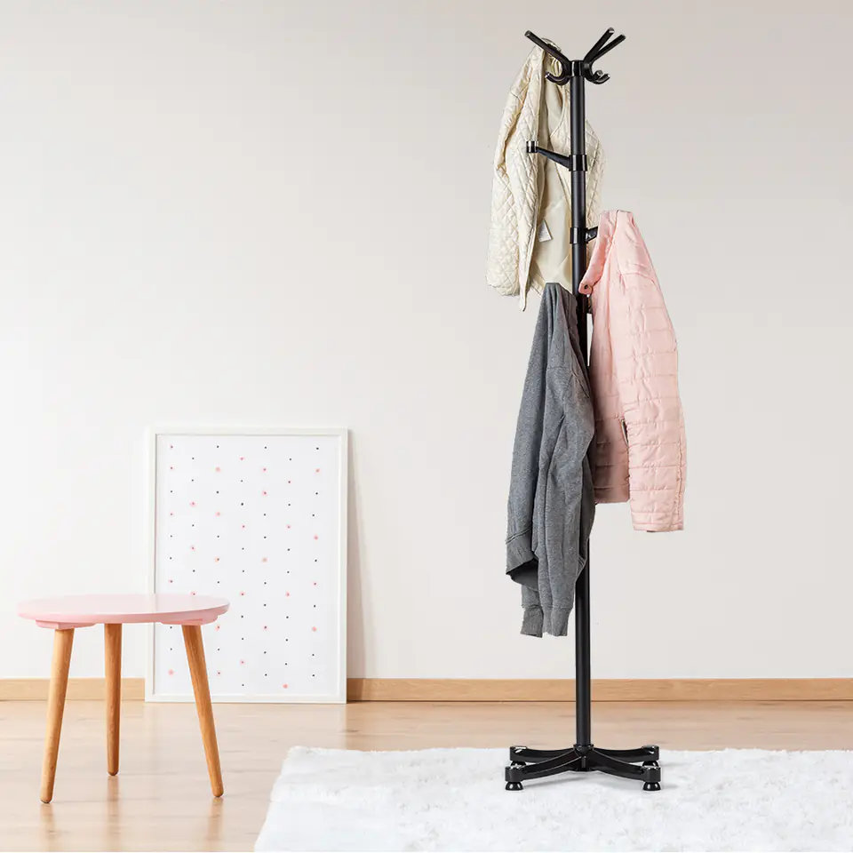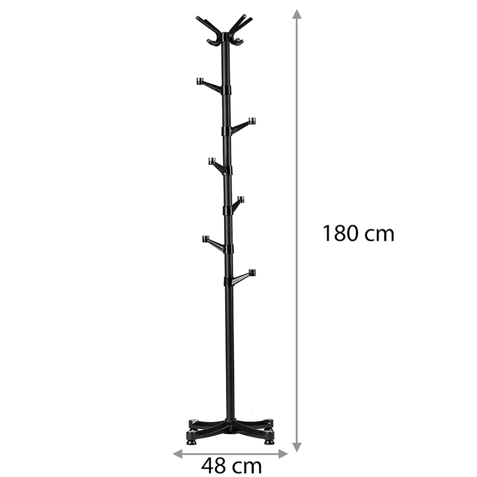 Stojący wieszak na ubrania to świetne uzupełnienie każdego przedpokoju, garderoby lub szatni. Charakteryzuje go duża funkcjonalność oraz stabilna konstrukcja, a dzięki wyjątkowemu designowi i formie drzewka idealnie uzupełni każde wnętrze. Wieszak składa się z 6 ramion umieszczonych jedno pod drugim, w górnej części znajdują się 4 ramiona, których zakończenia tworzą kolejne 8 haczyków na odwieszenie odzieży. Dzięki 18 funkcjonalnym ramionom, wieszak sprawdzi się nie tylko w domu, ale również w poczekalniach, biurach, czy w lokalach gastronomicznych.