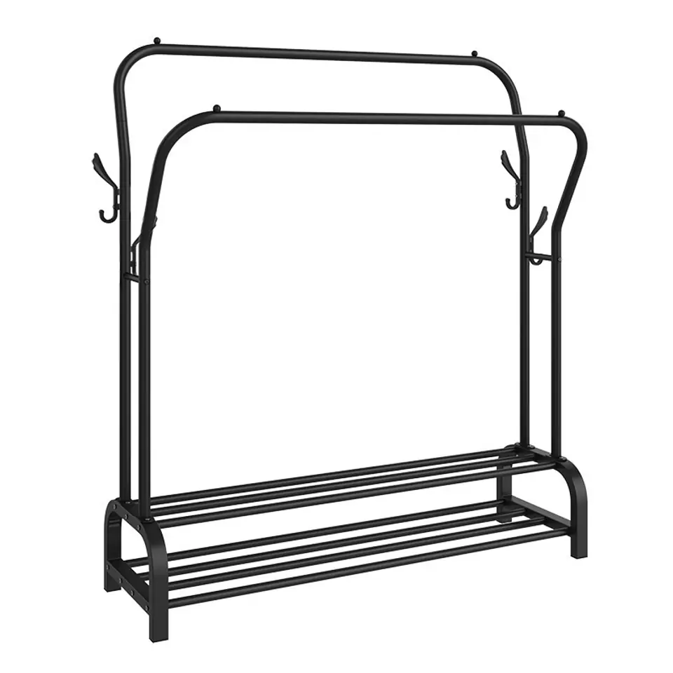 Wieszak stojący loftowy Lary czarnyPrzeznaczenie: butk, korytarz, garderoba | Kolory: czarny Wieszak garderobiany Lary to idealne rozwiązanie dla osób, które potrzebują dużo miejsca na przechowywanie swoich ubrań i akcesoriów. Ten podwójny wieszak garderobiany wyposażony jest w dodatkowe haczyki na akcesoria oraz dolne półki, które pozwalają na przechowywanie butów i innych przedmiotów. Konstrukcja wieszaka wykonana jest z solidnych stalowych rurek, które zostały malowane proszkowo na matowy czarny kolor, zapewniając mu stabilność i wytrzymałość. Dodatkowo, dwie poziome główne rurki posiadają blokady przed zsuwaniem się ubrań, co zapobiega nieporządkowi i zapewnia ładny wygląd garderoby. Wieszak Firma to model wielofunkcyjny i praktyczny, wykonany z materiałów najwyższej jakości, dbając o każdy szczegół. Dzięki niemu można pomieścić wiele ubrań i akcesoriów, jednocześnie oszczędzając cenną przestrzeń w garderobie. Cechy produktumateriał: stal malowana proszkowo, tworzywo sztuczne.waga z opakowaniem: 4 kgwaga: 3,6 kgkolor: czarny matmaksymalne równomierne obciążenie: 30 kgWymiary produktu Wysokość: 146 cmSzerokość: 121 cmGłębokość: 33 cm Informacje dodatkowePrzedstawione kolory należy traktować poglądowo - mogą odbiegać od rzeczywistych ze względu na różne ustawienia monitorów oraz proces obróbki zdjęć. Rzeczywiste wymiary mogą się różnić od podanych wyżej. Tolerancja błędów może wynosić +/- 5%.Marka:GockowiakKod EAN:5902340325933Kolor:czarnyWysokość: 146 cmSzerokość:110 cmGłębokość:33 cmDo samodzielnego montażu:tak