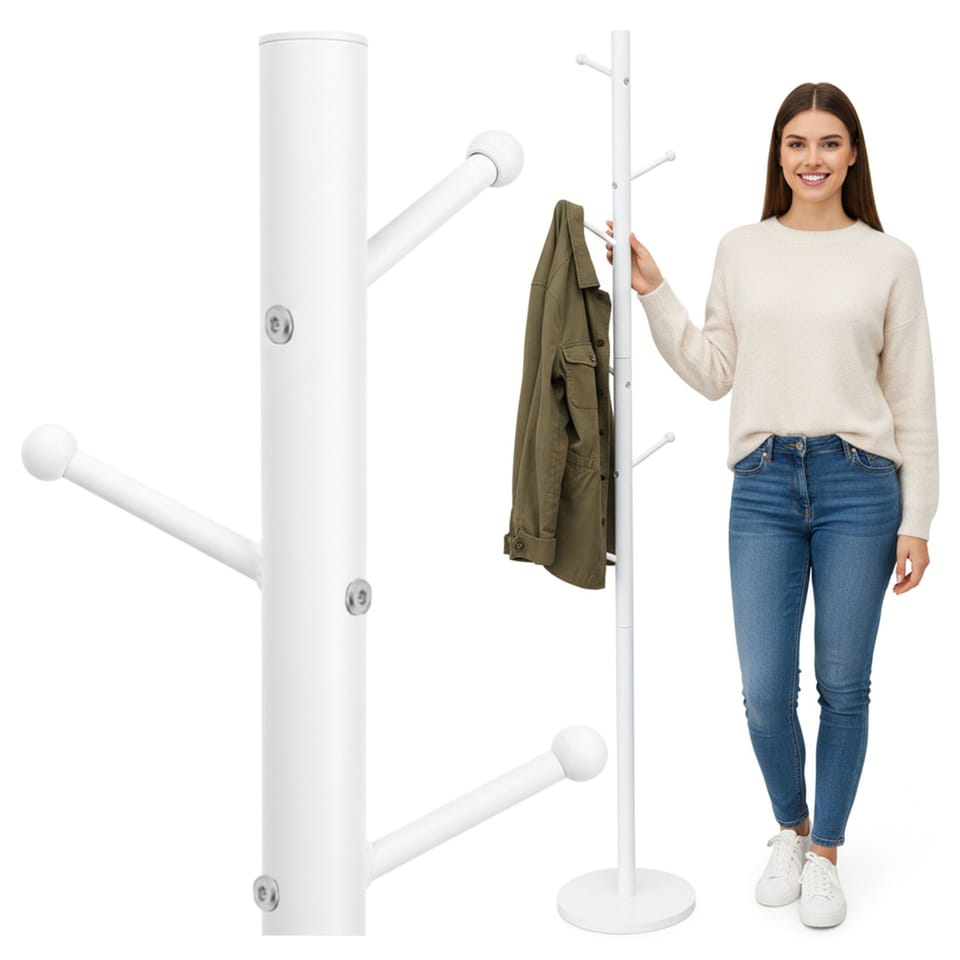 Wieszak stojący Niko białyUdźwig: 10 kilogramów | Kolor: biały ✨ Wieszak stojący Niko – styl, porządek i wygoda w Twoim domu✨Niko to nowoczesny wieszak stojący o wyjątkowym designie. Przykuwa uwagę swoją elegancją i prostotą wykonania. Model został wykonany ze stali malowanej proszkowo najwyższej jakości z zachowaniem dbałości o detale. Wszystkie elementy są estetycznie wykonane i gładkie. Solidna podstawa gwarantuje stabilność i bezpieczeństwo wieszaka. Niko ma aż 6 ramion, dzięki czemu pomieści sporą ilość odzieży. Model sprawdzi się w każdym domu i biurze, w którym brakuje miejsca do powieszenia odzieży. Doskonale pasuje do wnętrz zaaranżowanych w stylu skandynawskim. ✍️Specyfikacja:Wieszak wykonany ze stali malowanej proszkowoMaksymalne obciążenie wieszaka: 10 kg równomiernego obciążeniaMatowe wykończenieWaga: 2,28 kgIlość ramion: 6Podstawa: okrągła - metalowa✍️Wymiary:Wysokość: 167 cmŚrednica podstawy: 28 cmDługość pojedynczego wieszaka: 13 cmŚrednica głównego słupka: 38 mmŚrednica haczyków: 13 mmWysokość podstawy: 20 mm Informacje dodatkowePrzedstawione kolory należy traktować poglądowo - mogą odbiegać od rzeczywistych ze względu na różne ustawienia monitorów oraz proces obróbki zdjęć. Rzeczywiste wymiary mogą się różnić od podanych wyżej. Tolerancja błędów może wynosić +/- 5%. Marka:GockowiakKod produktu:328026MGKolor:połyskWysokość: 167 cmŚrednica podstawy:28 cmŚrednica pojedynczego wieszaka:1,3 cmPrzeznaczenie:korytarz, hall