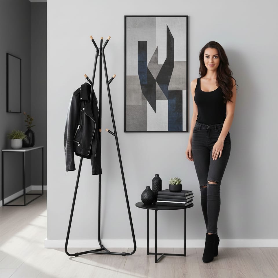 Wieszak stojący podłogowy stojak na kurtki ELIAN czarny
