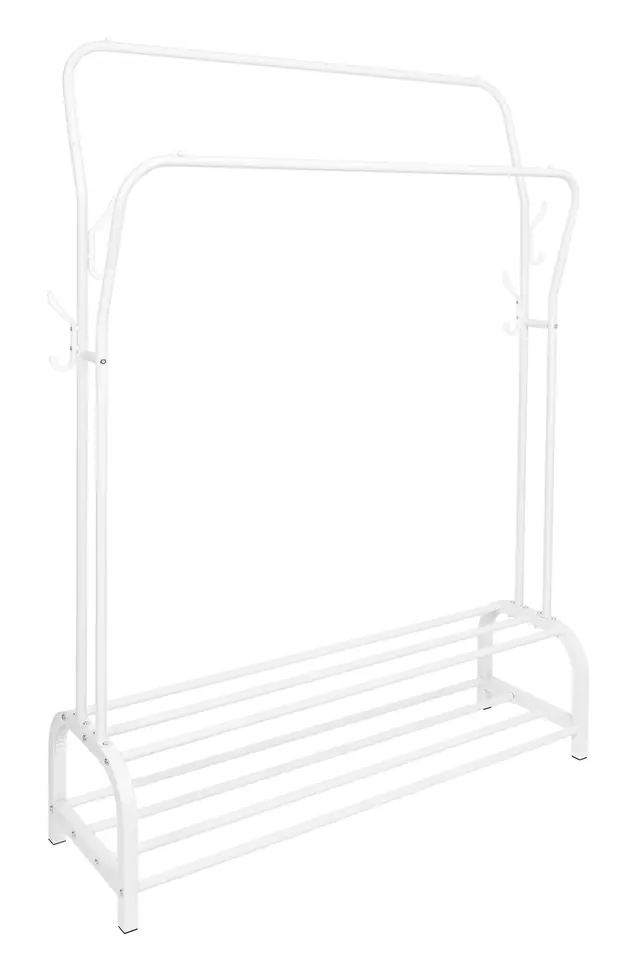 Wieszak stojący podwójny Lary białyPrzeznaczenie: butk, korytarz, garderoba | Kolory: biały Wieszak garderobiany Lary to idealne rozwiązanie dla osób, które potrzebują dużo miejsca na przechowywanie swoich ubrań i akcesoriów. Ten podwójny wieszak garderobiany wyposażony jest w dodatkowe haczyki na akcesoria oraz dolne półki, które pozwalają na przechowywanie butów i innych przedmiotów. Konstrukcja wieszaka wykonana jest z solidnych stalowych rurek, które zostały malowane proszkowo na biały kolor, zapewniając mu stabilność i wytrzymałość. Dodatkowo, dwie poziome główne rurki posiadają blokady przed zsuwaniem się ubrań, co zapobiega nieporządkowi i zapewnia ładny wygląd garderoby. Wieszak Lary to model wielofunkcyjny i praktyczny, wykonany z materiałów najwyższej jakości, dbając o każdy szczegół. Dzięki niemu można pomieścić wiele ubrań i akcesoriów, jednocześnie oszczędzając cenną przestrzeń w garderobie. Cechy produktumateriał: stal malowana proszkowo, tworzywo sztuczne.waga z opakowaniem: 4 kgwaga: 3,6 kgkolor: biały połyskmaksymalne równomierne obciążenie: 30 kgWymiary produktuWysokość: 146 cmSzerokość: 121 cmGłębokość: 33 cm Informacje dodatkowePrzedstawione kolory należy traktować poglądowo - mogą odbiegać od rzeczywistych ze względu na różne ustawienia monitorów oraz proces obróbki zdjęć. Rzeczywiste wymiary mogą się różnić od podanych wyżej. Tolerancja błędów może wynosić +/- 5%.Marka:GockowiakKod EAN:5902340325940Kolor:białyWysokość: 146 cmSzerokość:110 cmGłębokość:33 cmDo samodzielnego montażu:tak