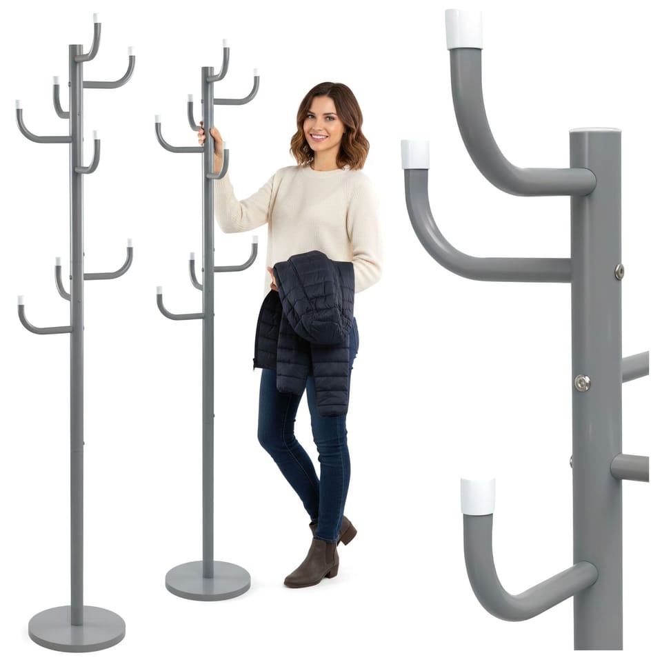 Wieszak stojący na ubrania Wiktor szary⭐️ Aż 8 ergonomicznych ramion⭐️ Wysoka jakość wykonania⭐️ Dodatkowe wieszaki dla dzieci⭐️ Nowoczesny, loftowy design⭐️ Zakup od producenta✨ Wieszak stojący Wiktor – Nowoczesny design i perfekcyjny porządek ✨Wieszak stojący Wiktor to stylowe i funkcjonalne rozwiązanie, które pomoże Ci utrzymać porządek w każdym wnętrzu. Doskonale sprawdzi się w przedpokoju, sypialni czy biurze, oferując wygodne miejsce na kurtki, płaszcze oraz codzienne dodatki. Wykonany z trwałej, malowanej proszkowo stali, wieszak zachwyca stabilnością i odpornością na uszkodzenia, dzięki czemu posłuży Ci przez długie lata. Jego nowoczesny design w eleganckim szarym połysku doskonale dopełni zarówno minimalistyczne, jak i industrialne aranżacje wnętrz.☑️ Specyfikacja:Materiał konstrukcji: Stal malowana proszkowoMaksymalne równomierne obciążenie wieszaka: 10 kgWaga: 2,30 kg☑️ Wymiary:Wysokość całkowita: 175 cmSzerokość wieszaka: 35 cmWysokość najniższego wieszaka: 100 cmŚrednica pionowej rury: 38 mmŚrednica rury ramion: 19 mmŚrednica podstawy: 29 cm Informacje dodatkoweMarka:GockowiakKod EAN:5902340331163Kolor:szaryWysokość:175 cmSzerokość:29 cmGłębokość:29 cm