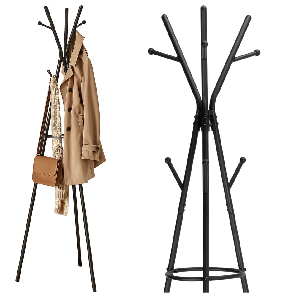 Wieszak stojak podłogowy ERIS czarnyModel: ERIS | Kolor: Czarny mat | Przeznaczenie: Przedpokój, garderoba Nowoczesny wieszak stojący Eris to praktyczne rozwiązanie do przechowywania odzieży wierzchniej, które nie tylko pomaga utrzymać porządek, ale i wprowadza elegancję do każdego wnętrza. Dzięki swojej smukłej konstrukcji i matowemu, czarnemu wykończeniu doskonale wpasuje się w przedpokój, biuro czy poczekalnię, nie zajmując przy tym dużo miejsca. Stabilna stalowa konstrukcja, aż 6 haczyków i dodatkowy uchwyt na parasole sprawiają, że to mebel, który nie tylko dobrze wygląda, ale też realnie ułatwia codzienne życie.⭐️ 6 haczyków do zawieszania⭐️ Stal malowana proszkowo⭐️ Eleganckie matowe wykończenie⭐️ Zaokrąglone haczyki⭐️ Uchwyt na parasole⭐️ Zakup od producenta✔️ Specyfikacja:Materiał: Stal malowana proszkowoKolor: Czarny matLiczba haczyków: 6Okrąg do zawieszenia parasolekZakończenia haczyków: ZaokrągloneMaksymalne obciążenie: 10 kgWaga: 1,6 kg✔️ Wymiary:Wysokość: 172 cmSzerokość: 59 cmGłębokość: 59 cm Informacje dodatkowePrzedstawione kolory należy traktować poglądowo - mogą odbiegać od rzeczywistych ze względu na różne ustawienia monitorów oraz proces obróbki zdjęć. Rzeczywiste wymiary mogą się różnić od podanych wyżej. Tolerancja błędów może wynosić +/- 5%. Marka:GockowiakKod produktu:331927MGKod EAN:5902340331927Kolor:czarnyWysokość: 172 cmSzerokość:59 cmMateriał:stalPrzeznaczenie:korytarz | przedpokój | biuroDo samodzielnego montażu:tak