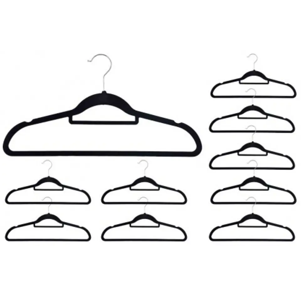 Wieszak welurowy Maxi komplet 10 szt - czarny