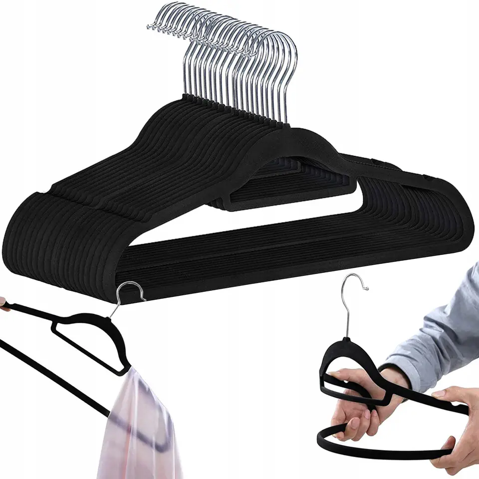 Wieszak welurowy na ubrania Maxi komplet 20 sztuk - czarny