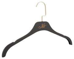 For high-quality way of presenting products! Velvet covered clothes hangers with Złoty-coloured NOIR text and hook. Size: 43 cm long, 14 cm high. 5 hangers in a bag.