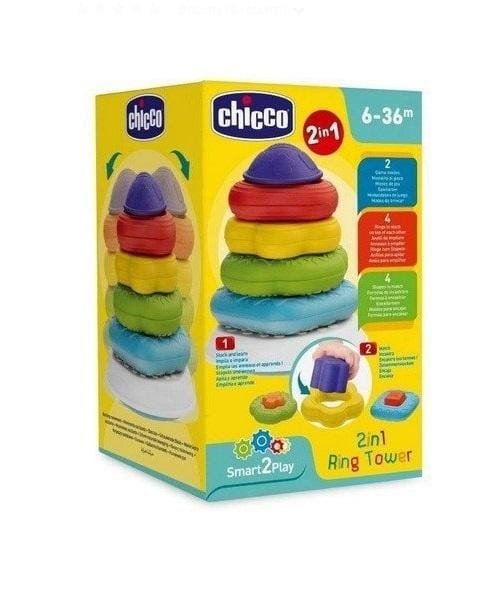 Wieża 2 w 1 to zabawka, która pomaga rozwijać umiejętności poznawcze u dziecka i koordynację ręka-oko. Składa się z kilku elementów, których układania pozwala dziecku się rozwijać: 4 pierścienie w różnych rozmiarach i nadrukowanymi różnorodnymi kształtami oraz 4 różne kształty do włożenia do pierścieni.Kołysząca baza sprawia, że proces układania jest dla starszego dziecka delikatnie utrudniony, co jeszcze lepiej wpływa na rozwój jego umiejętności.