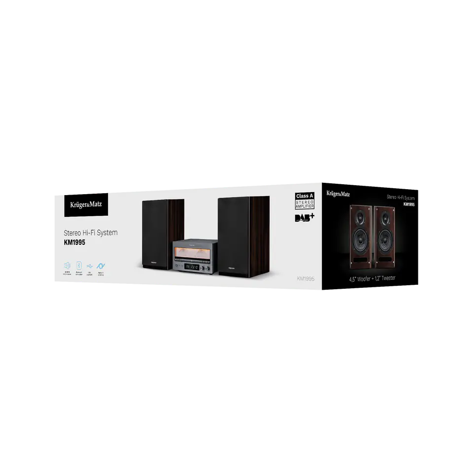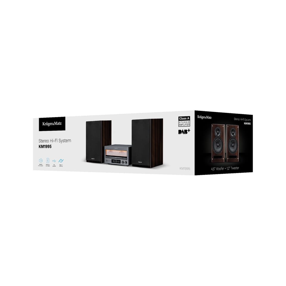 Wieża HiFi Kruger&Matz KM1995 Wzmacniacz klasy A, CD, USB, Bluetooth, radio cyfrowe DAB+, FM