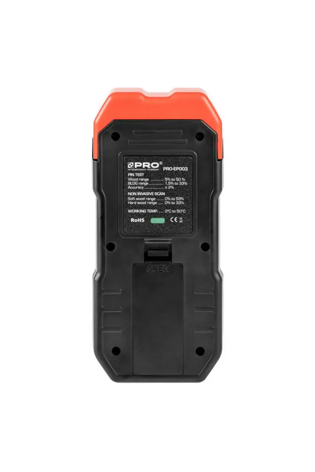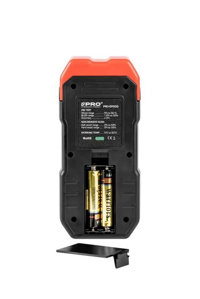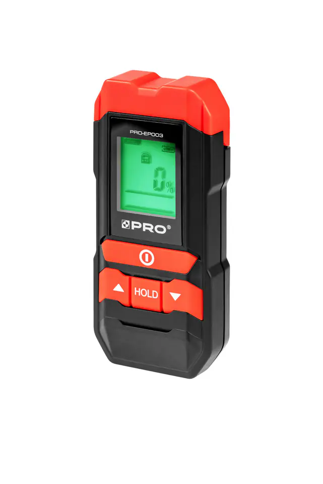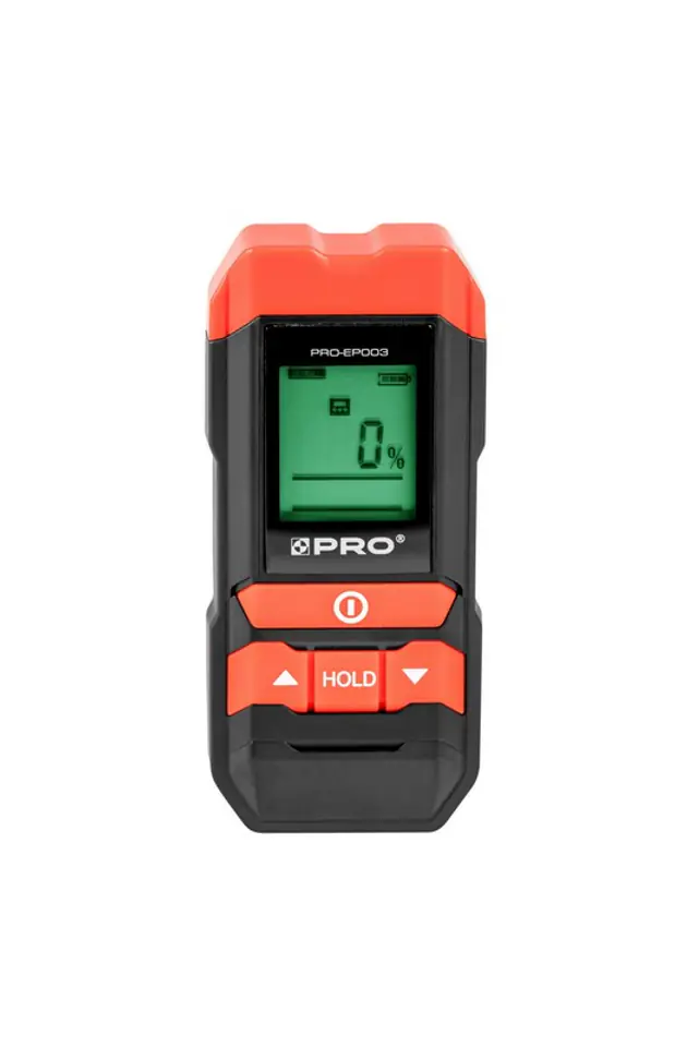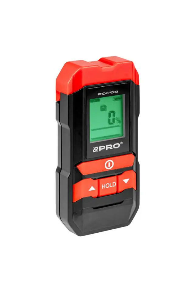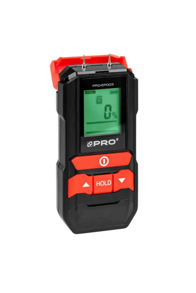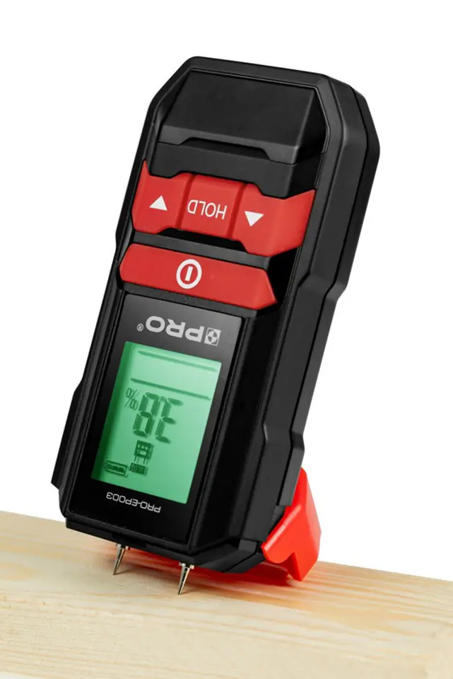 Praca z próbnikiem szpilkowym: drewno: 5%-50%, materiały budowlane: 1,5%-33%, zakres błędu: +/-2%