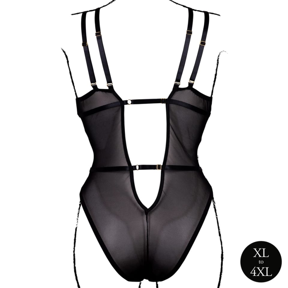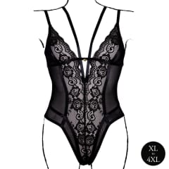 Wireless Lace Bodysuit with Adjustable Sliders - Plus Size - Black kolor czarny, rozmiar Plus Size