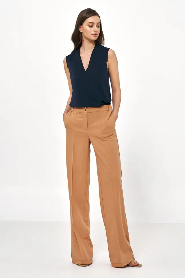 Wiskozowa, gładka bluzka to doskonała baza do Twoich stylizacji #softoffice, ale nie tylko. Świetnie wygląda z cygaretkami, spódnicami z wysokim stanem, a także z klasycznymi jeansami. Ma swobodny fason bez rękawów oraz dekolt w kształcie litery V. Materiał zapewnia komfort noszenia przez cały dzień! Skład: 100% wiskoza. Modelka na zdjęciu ma 176 cm wzrostu i ma sobie rozmiar 36.