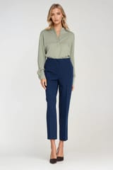 Wiskozowa bluzka polo ze stójką - pistacjowy - B194 kolor pistacjowy, rozmiar 36