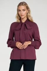 Wiskozowa bluzka z szarfą - śliwka - B204 kolor śliwkowy, rozmiar 38