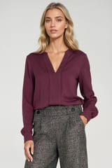 Krój regular. Materał wiskoza. Dekolt w kształcie litery V z szeroką plisą. Długi rękaw zakończony mankietem. Wkładana przez głowę. Skład: 100% wiskoza Modelka na zdjęciu ma 176 cm wzrostu i ma sobie rozmiar 36.