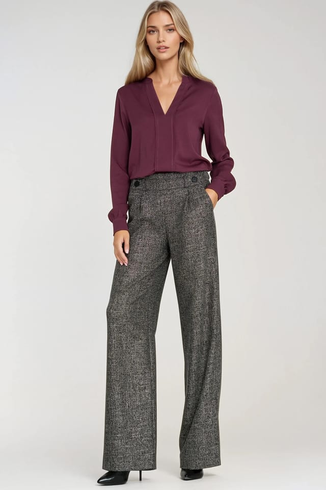 Wiskozowa bluzka z szeroką plisą na dekolcie - śliwka - B196 kolor śliwkowy, rozmiar 40