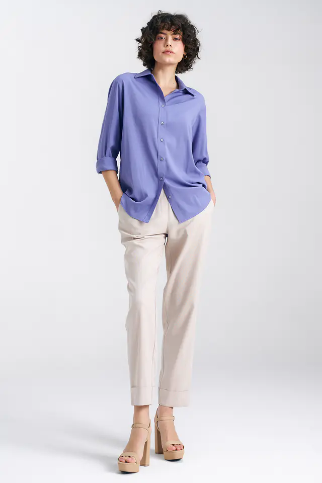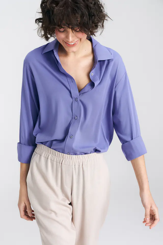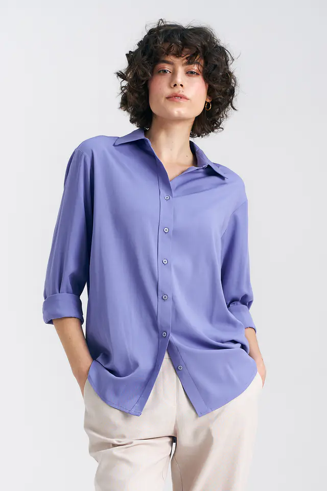 Wiskozowa koszula oversize - fioletowy - K75 kolor fiolet, rozmiar 42