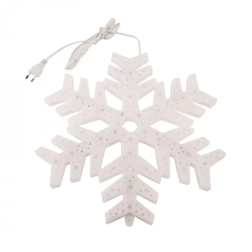 OZDOBA ŚWIĄTECZNA NA BOŻE NARODZENIE Wisząca ozdoba na ścianę/okno z kablem. Wymiary: Wysokość : 40 cmDługość : 40 cmDługość kabla : 70 cm Po podłączeniu produkt miga na biały kolor.
