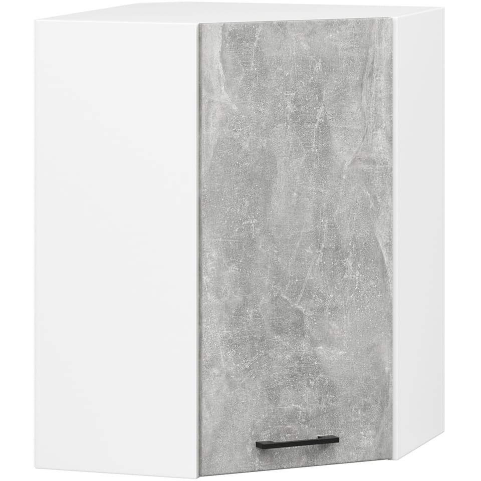 Wisząca szafka narożna z kolekcji Oliwia przeznaczona do zabudowy kuchennej to wysokiej jakości produkt, który charakteryzuje się trwałością, solidnym wykonaniem oraz odpornością na uszkodzenia. Mebel o wymiarach 60x72 centymetrów został zaprojektowany w uniwersalnym kolorze białym z frontami beton, który jest łatwy w czyszczeniu. Uchwyty utrzymane w matowym kolorze czarnym z pewnością nadadzą elegancji całej aranżacji. Szafkę swobodnie można łączyć z innymi elementami wyposażenia pochodzącymi z kolekcji Oliwia, na przykład z szafką stojącą S 90x90 centymetrów - jednak aby tworzył cały komplet nad daną szafkę potrzeba dokupić 2x szafkę W 30cm.