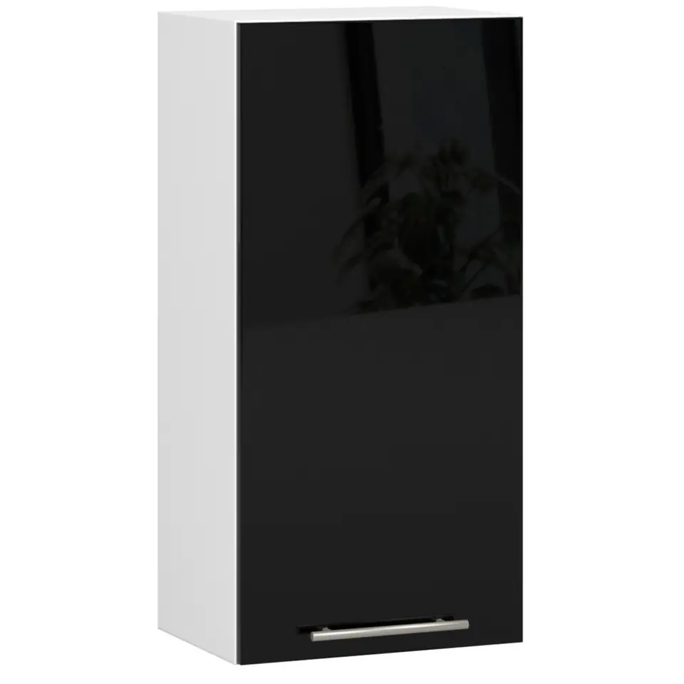 Wisząca szafka kuchenna Oliwia W 40cm w kolorze czarnym pochodzi z zestawu mebli systemowych, dzięki którym stworzą Państwo kuchnię swoich marzeń. Wnętrze szafki posiada jedną półkę, która może służyć przechowywaniu naczyń lub produktów spożywczych.